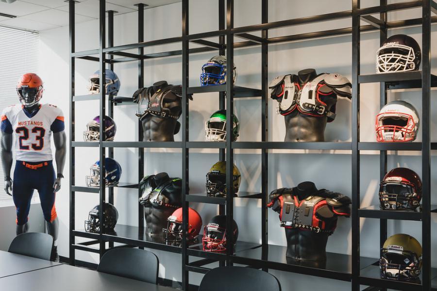Riddell relocated from Rosemont to their state-of-the-art office space at 1700 Higgins Road in Des Plaines, Illinois to showcase the company’s robust history in football and the development of innovative products. Along with serving as Riddell’s corporate headquarters, the new space will include a best-in-class testing lab and connected work space to advance the design and development of football headgear, protective equipment and head impact monitoring technology. With proximity to Chicago and O’Hare International Airport, the space modernization includes 19,640 square feet of interior office buildout on the 5th floor including 3,325 square feet of testing laboratory space based upon converting a portion of the existing parking garage into Riddell’s Workshop and Storage Area. New partitions, doors, and ceilings as well as upgraded finishes and new furnishings to include faux grass breakroom feature wall, solid surface countertops, luxury vinyl tile flooring, custom accent area rug, floor to ceiling glass boardroom storefront and entryway with herculite doors. MHC also updated the 5th floor common areas and a vacant suite entrance to Riddell's offices. A new mechanical, electrical and plumbing system was also replaced and updated. Click on the link for a video of Peyton Manning, Riddell's brand ambassador, surprising CPS students on his visit to the new headquarters office.http://wgntv.com/2017/09/12/peyton-manning-surprises-cps-team-with-visit...